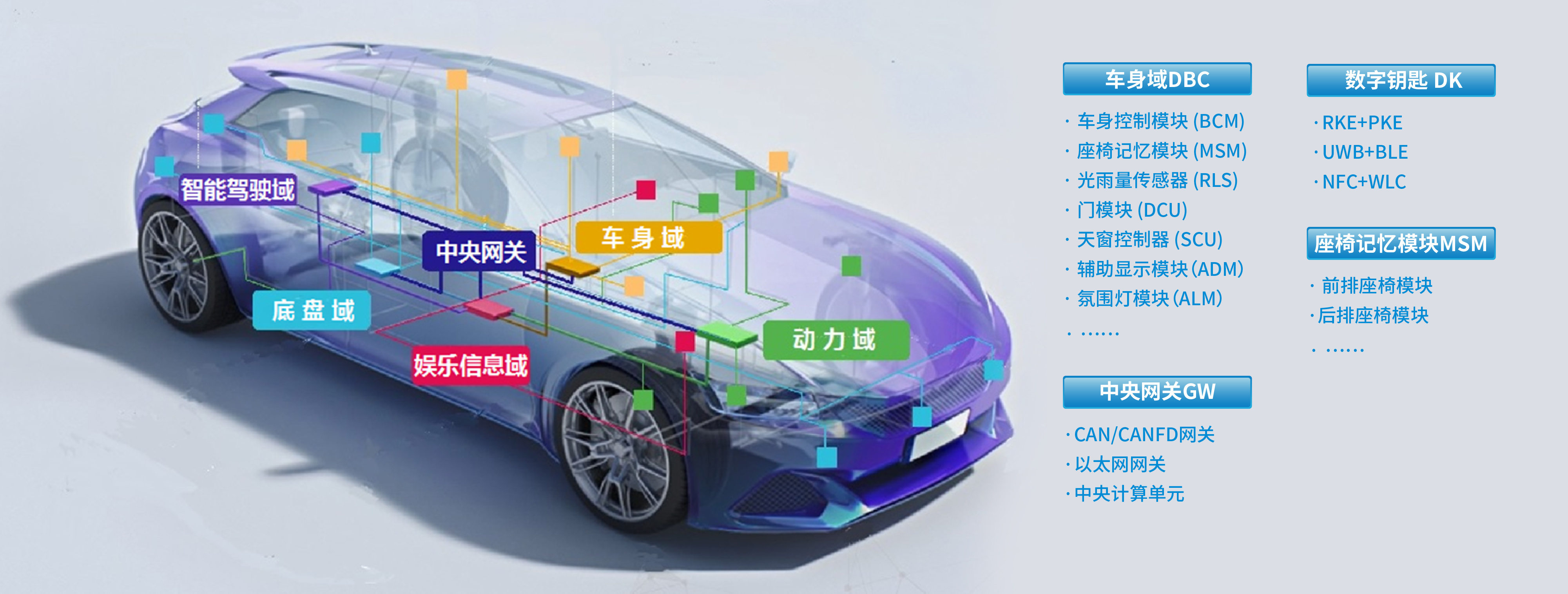 車身電子業(yè)務(wù)方面,歐菲光自2015年布局智能汽車,在軟硬件方面均有所積淀,可為客戶提供性價比的車身域控制器(BCM/BGM)、網(wǎng)關(guān)模塊(GW)、數(shù)字鑰匙(DK)、座椅記憶模塊(MSM)等產(chǎn)品。
